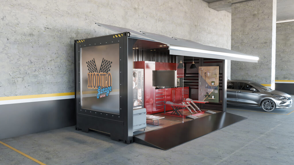 O Módulo de Garagem é uma solução autônoma de autoatendimento veicular, projetada para oferecer suporte a pequenos e médios reparos de forma rápida, segura e sem necessidade de oficina. Instalado em locais estratégicos como rodovias, shoppings e condomínios, o módulo integra tecnologia de ponta como reconhecimento facial, sensores inteligentes e câmeras com IA para garantir conveniência, autonomia e segurança ao usuário.